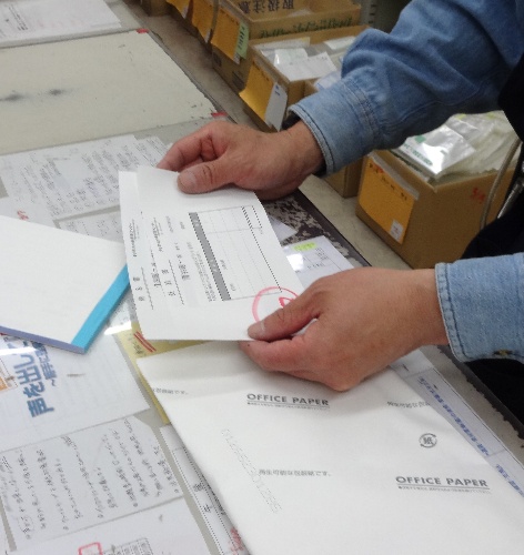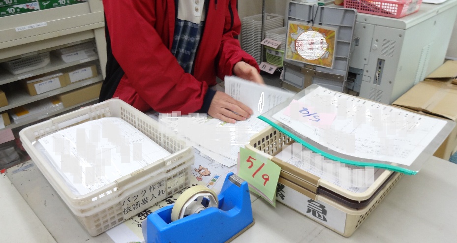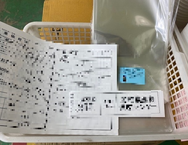 数えたパッケージに加え、作業依頼書や、内容や結果を