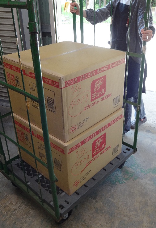 資材同様バスケットへ行先別に入れ、次の工程にお届けです