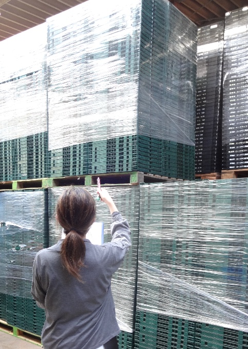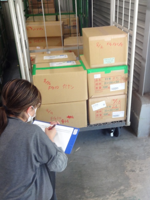 台車を使い運搬します。伝票を貼り所定の場所に置きます