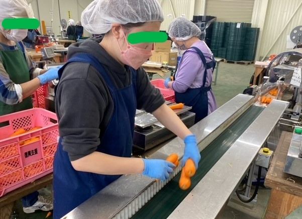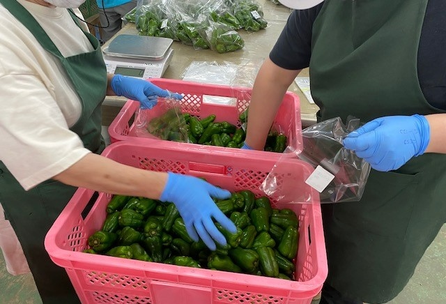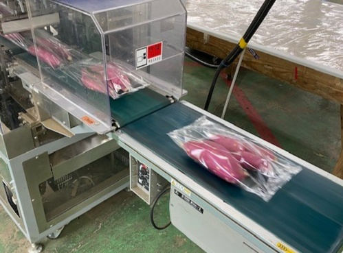 包装機が袋にいれてくれ、ラベルも自動で貼られます