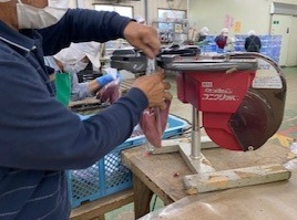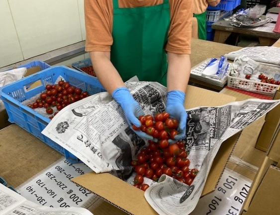 決められた重さになるまで、ダンボールに入れます